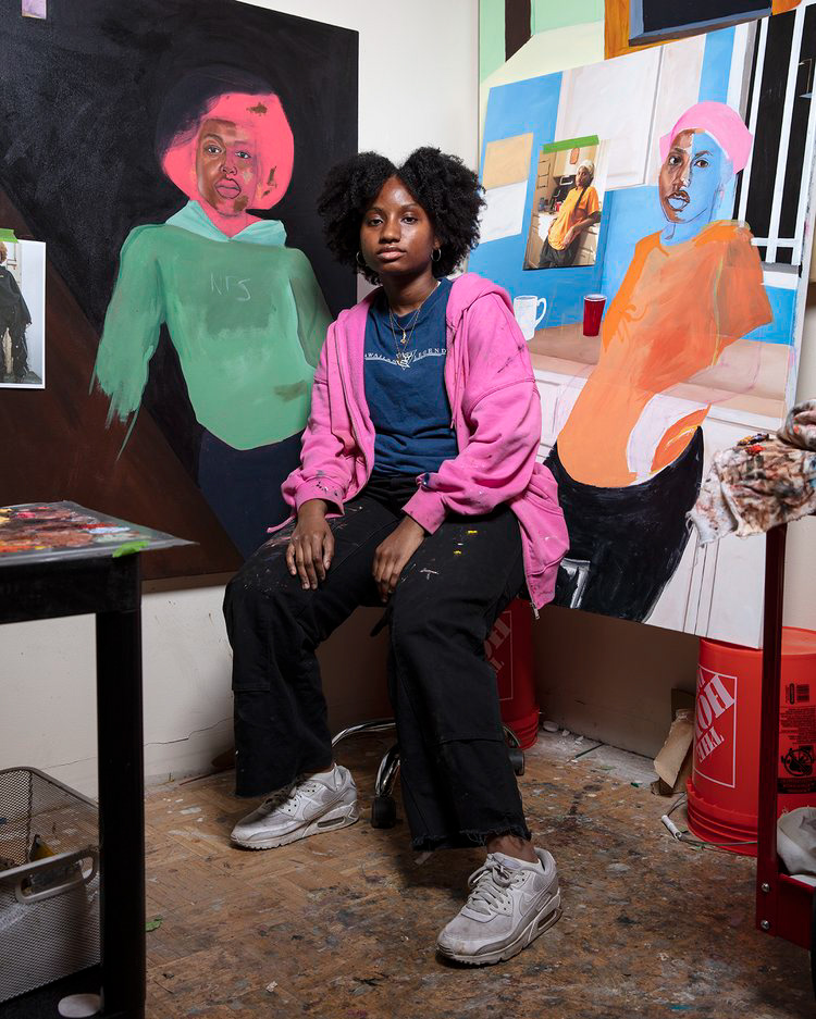 Kaleigh Blevins (b. Detroit, 2000) is an artist living and working in Detroit, whose work examines the way Black identity is shaped in America, and the effects of this experience. In her work, familiar images are distorted to illustrate the state of uncertainty and isolation many Black people exist in. She recently received her BFA in Painting from Wayne State University. Her work has been exhibited across Metro Detroit and in New American Paintings magazine.